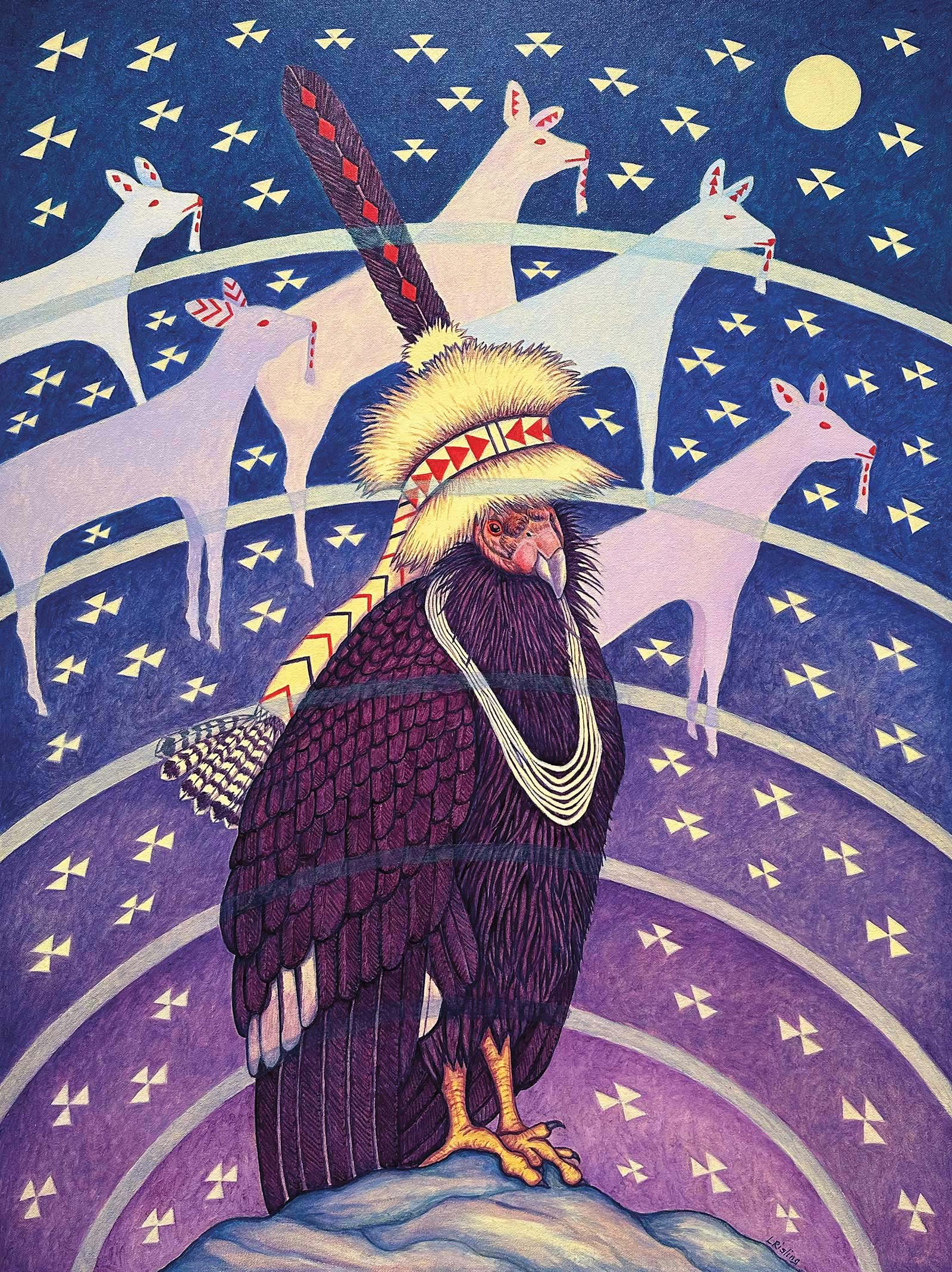 Gorman Museum of Native American Art, Peethívthaneen ikyáavan (Fix the Earth Person), 2018, acrylic on canvas, 40 x 30 in., by Lyn Risling (Yurok/Hupa).