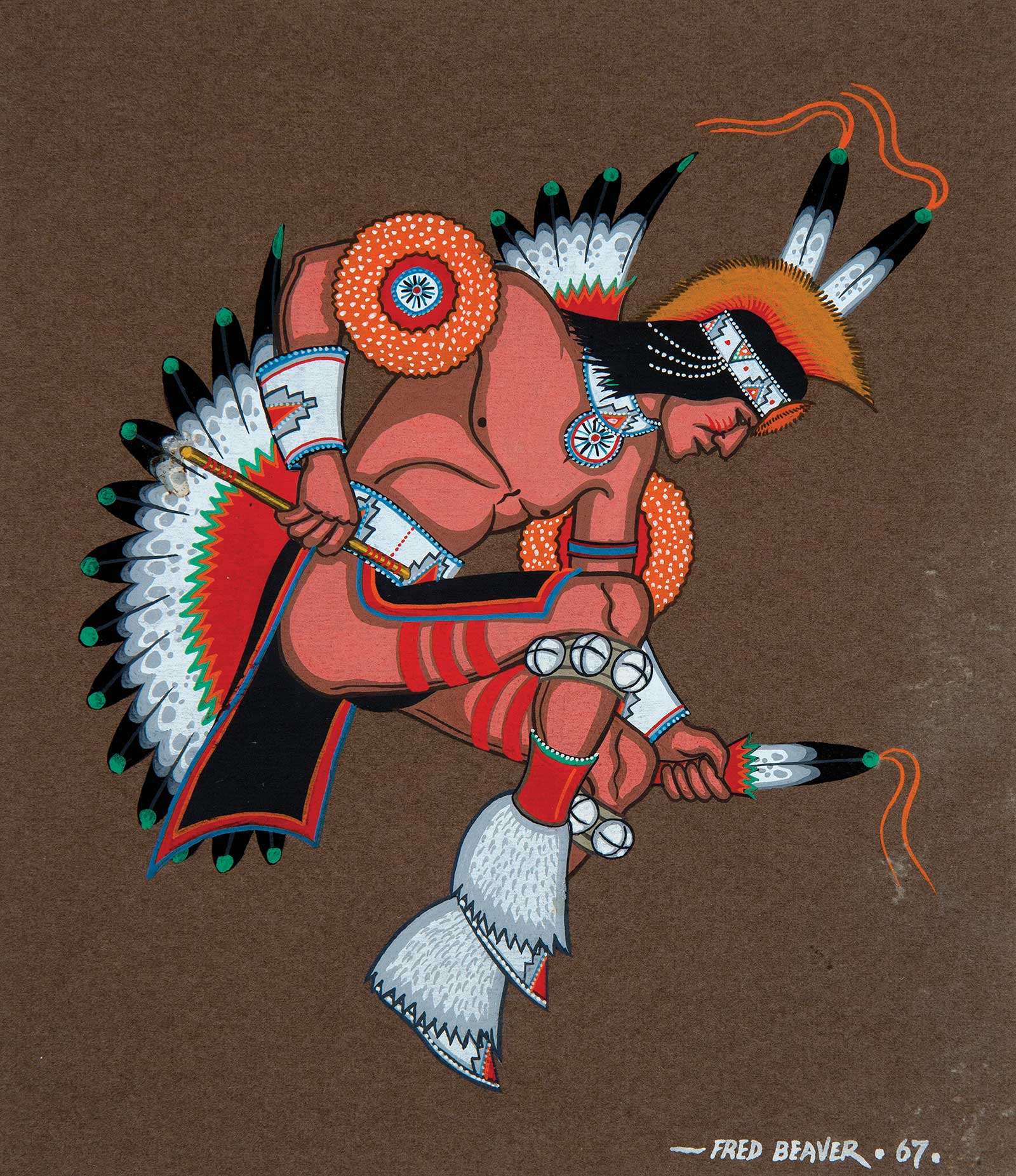 Philbrook Museum of Art, Plains Indian Dancer, 1967, watercolor on mat board, 9 x 7 in., by Fred Beaver (Creek-Seminole, 1911-1980). Gift of Dr. and Mrs. John Robinson, 2013.12.1.