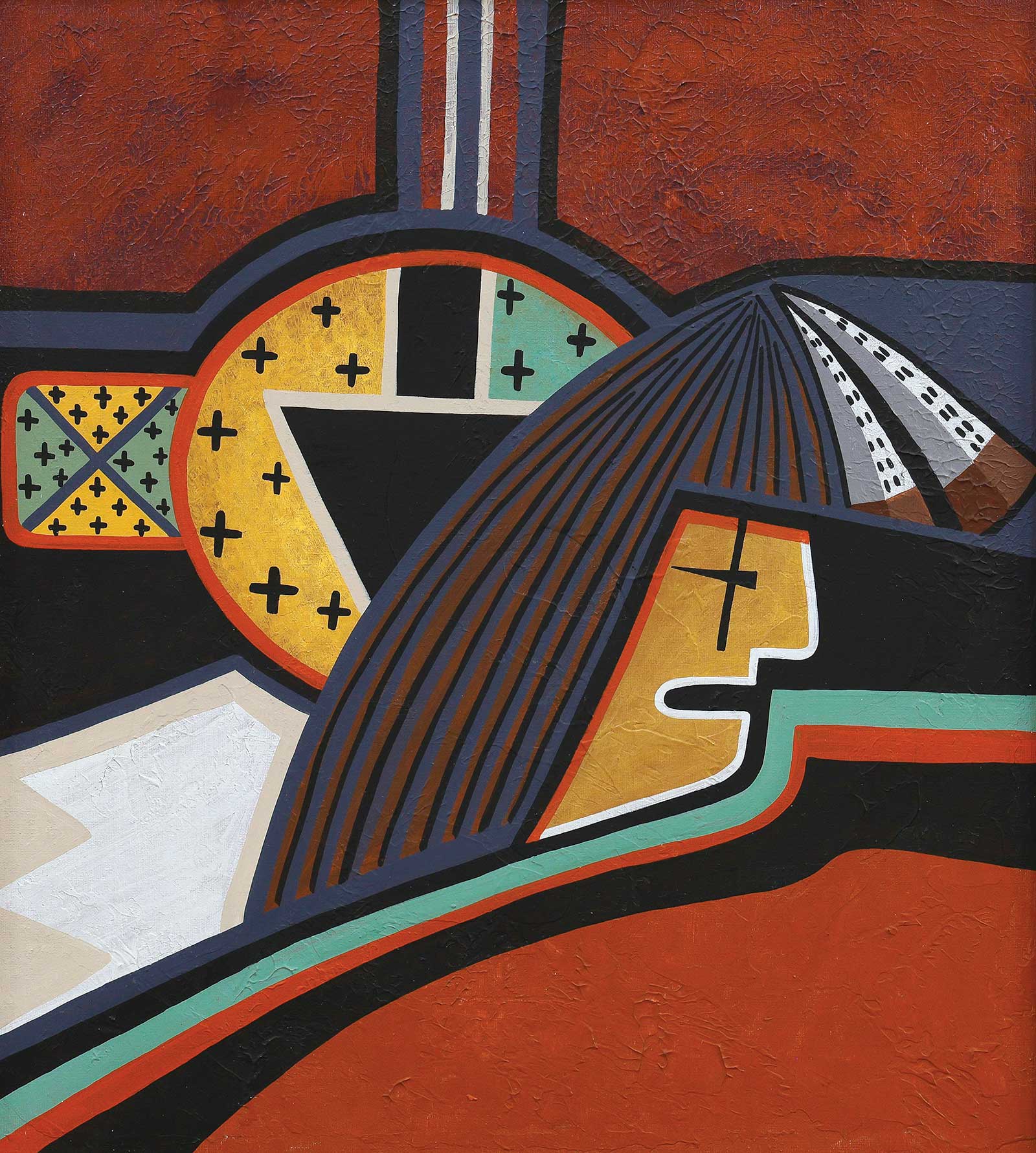 Museum of Northern Arizona, Ah-hola Priest, acrylic on canvas, 24 x 21 in., by Milland Lomakema (Hopi).