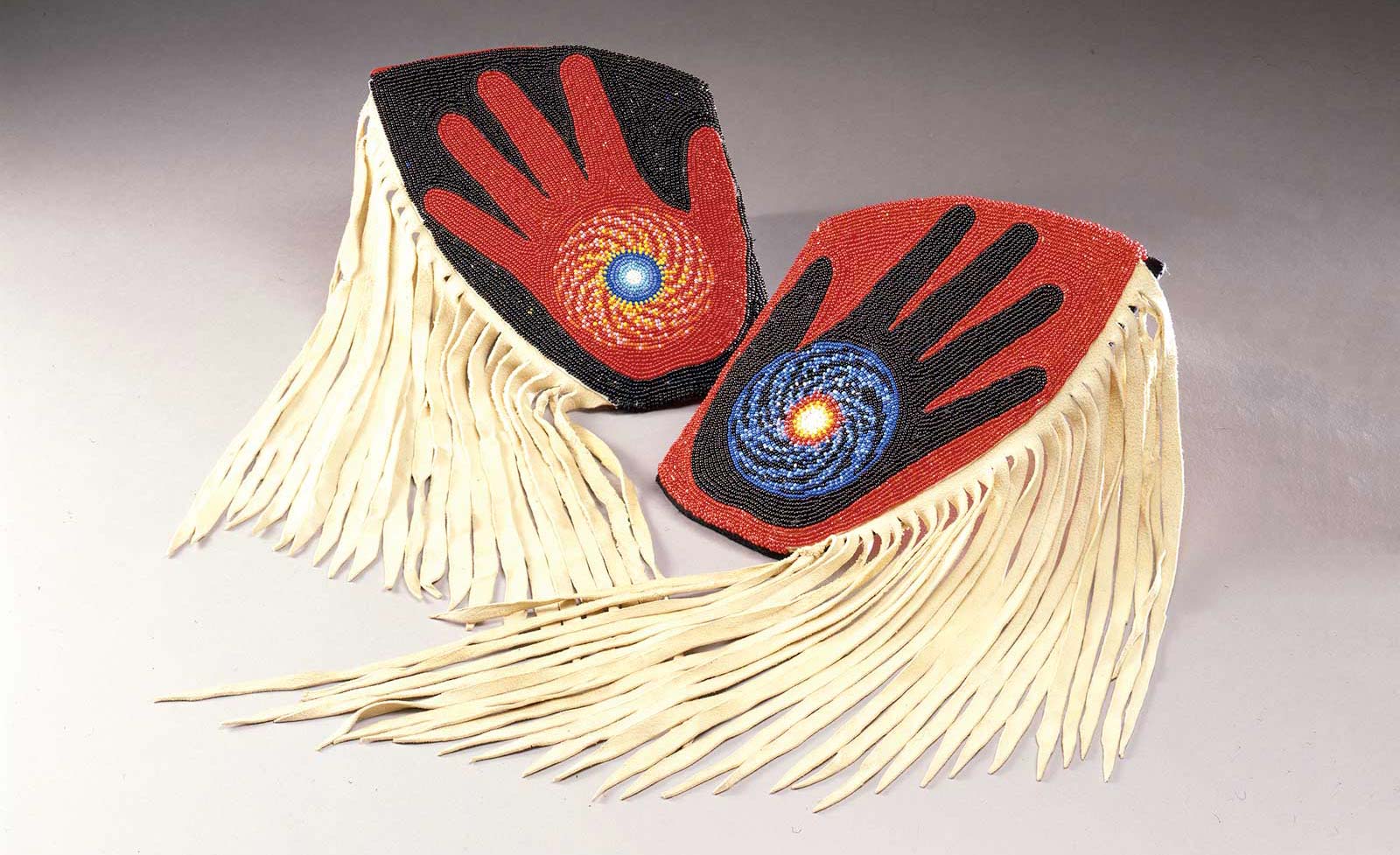 Marcus Amerman (Choctaw), Untitled Fringed and Beaded Cuffs, 1980, beads, wool, buckskin. CHO-33; IAIA Museum Purchase, 1992; Courtesy of the IAIA Museum of Contemporary Native Arts, Santa Fe, NM. © Marcus Amerman. Photograph by Walter Bigbee.