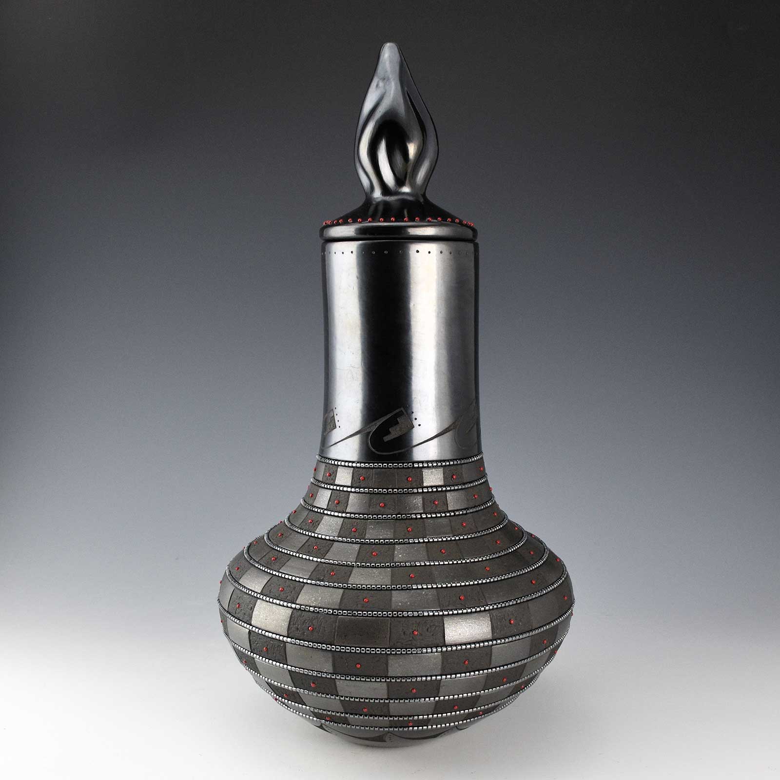 Russell Sanchez (San Ildefonso Pueblo), Long Neck Flame lid jar, native clay
