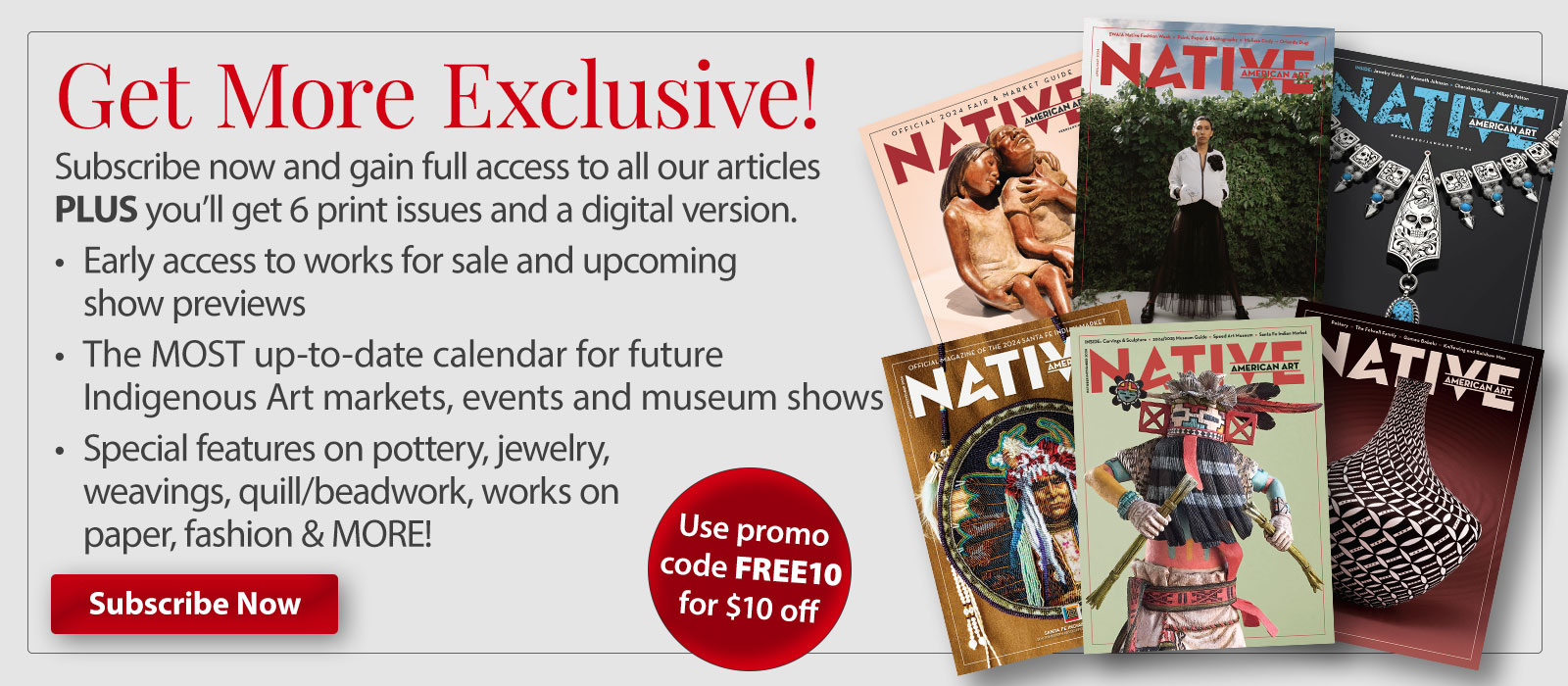 Sublette also hopes that visitors take away how modern these artists are. They are not just at the forefront of a movement, in many cases they invented the movement and have made huge leaps long before others. He points to Native weavings, or pueblo pottery, or early abstract work as proof that Native American artists have always been on the cutting edge of art. “I love seeing the work that is outright modern. Some of the work is thematic that the artists draw creative magic from. Then there’s also the cultural heritage and history, and their connections to the land,” he says. “But the really modern and contemporary work is always exciting. I’ve sort of lagged behind on some of that, but it has certainly opened my eyes.”
